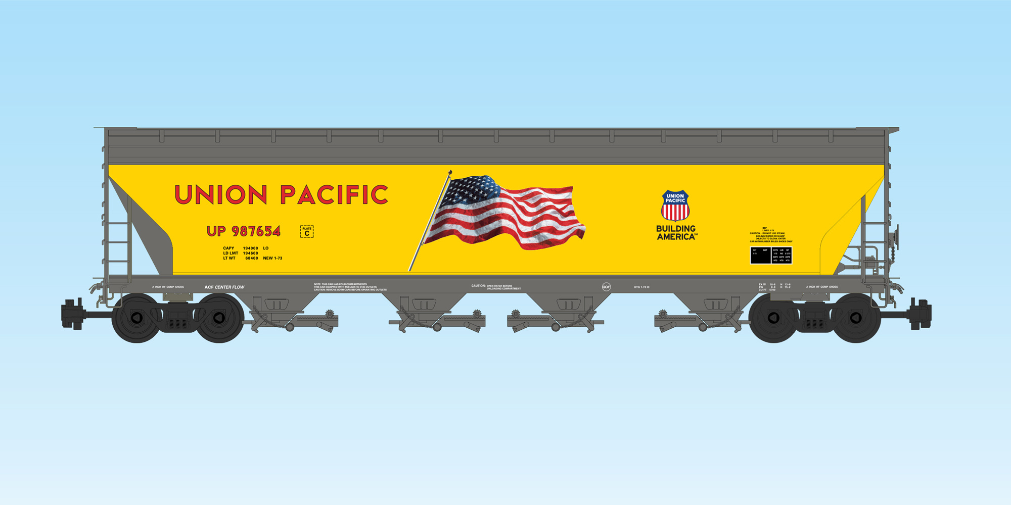 USA TRAINS 4 Bay Center Flow Hopper Union Pacific with flag