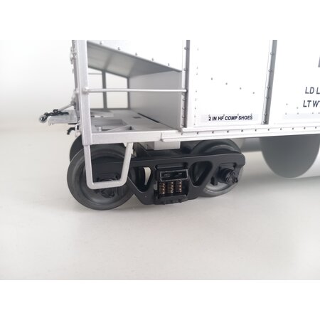 Viele Typen haben gar keine Entladeluken mehr, sondern nutzen den tiefen Rahmen wir weiteres Fassungsvermögen. Meist werden die Wagen maschinell beladen und beim Entladevorgang komplett gekippt. Die farblich abgesetzte Seite markiert die drehbare Kupplung für den Kippvorgang.