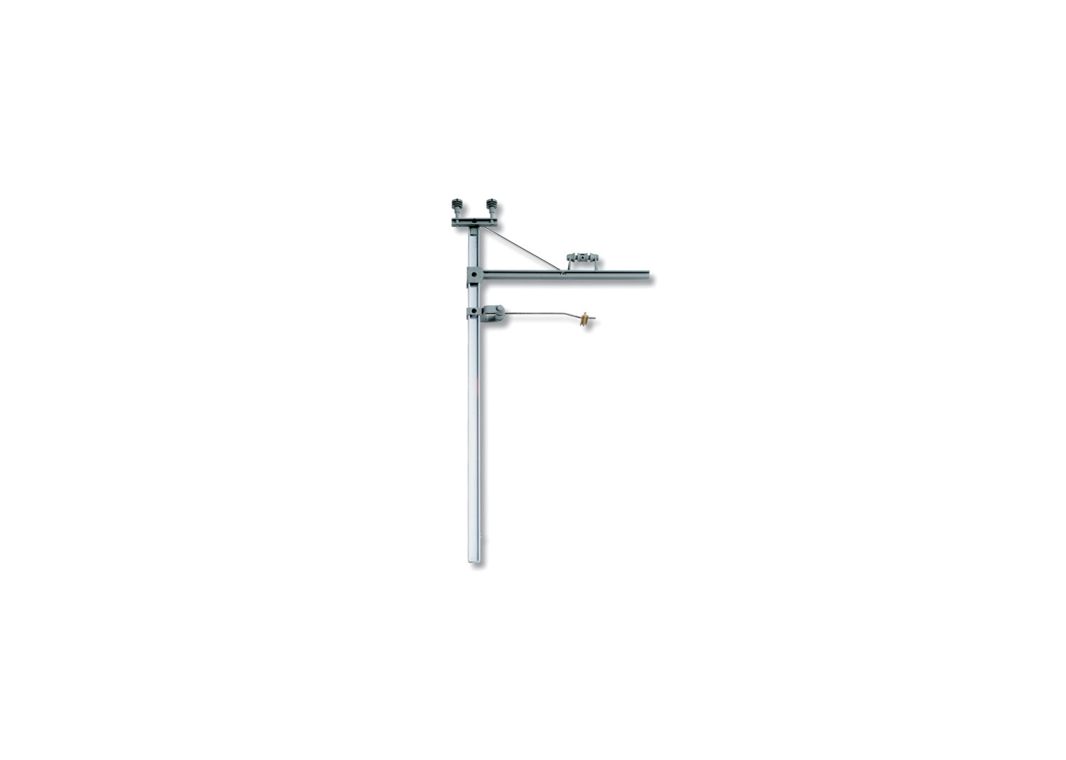 Die Nachbildung eines modernen Oberleitungsmastes der Schweizer Bahnen. Bei diesem Modell wird der Fahrdraht an einem Tragseil aufgehängt. Der vorbildgetreue Mast besteht aus Aluminium und ist mit zwei Auslegern ausgestattet, einer für den Fahrdraht und einer für das Tragseil. Der Fahrdraht wird 225 mm über der Schienenoberkante befestigt. Zur Aufstellung des Mastes kann wahlweise der Oberleitungsmastsockel (LGB 56302) oder der Oberleitungsmastsockel, schwenkbar (LGB 56303) verwendet werden.