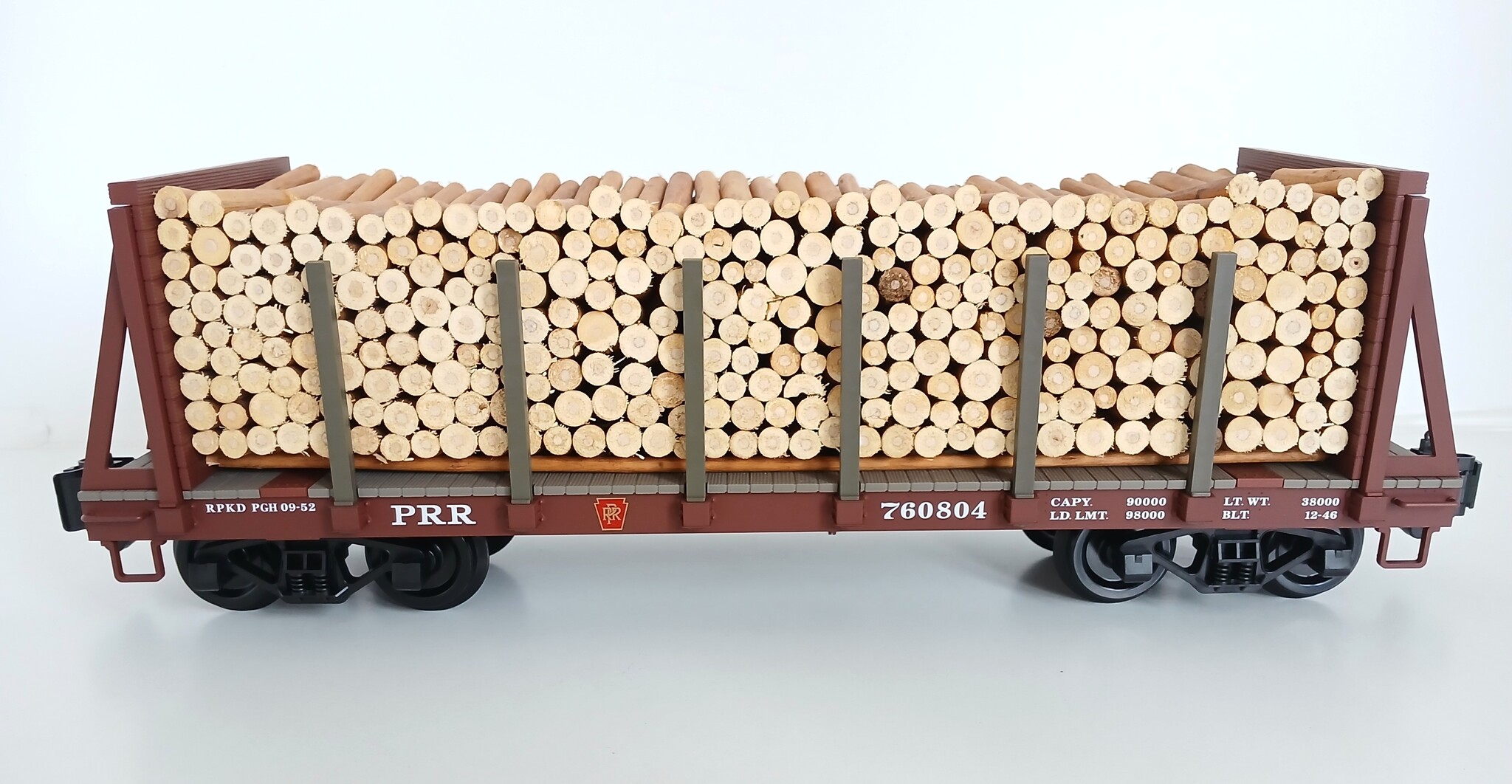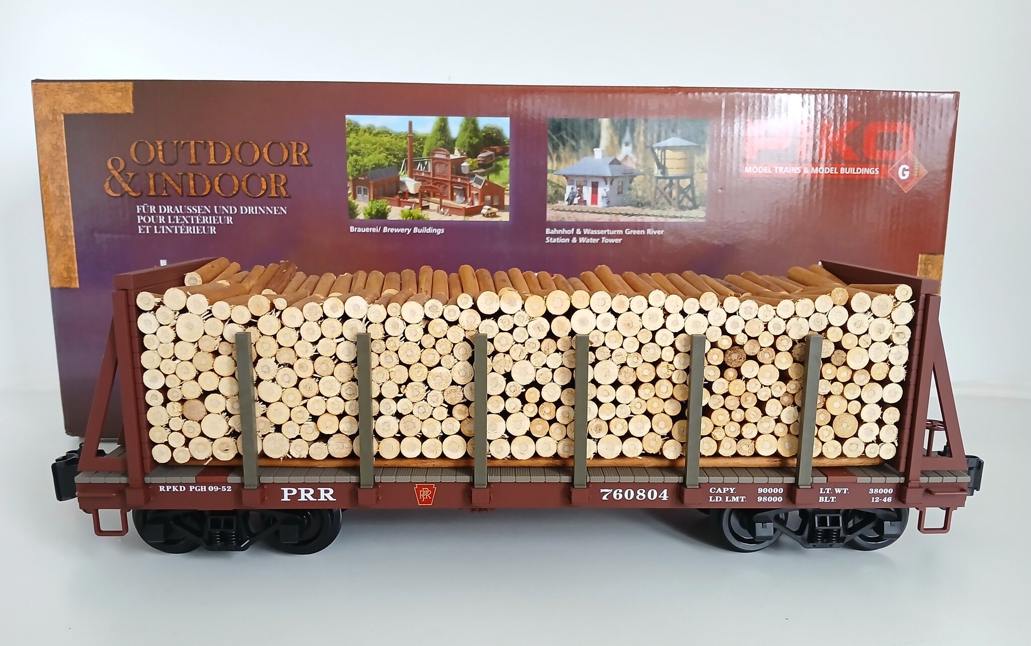 Pennsylvania Flatcar mit Echtholz-Ladung und Rungen (sehr guter Zustand)