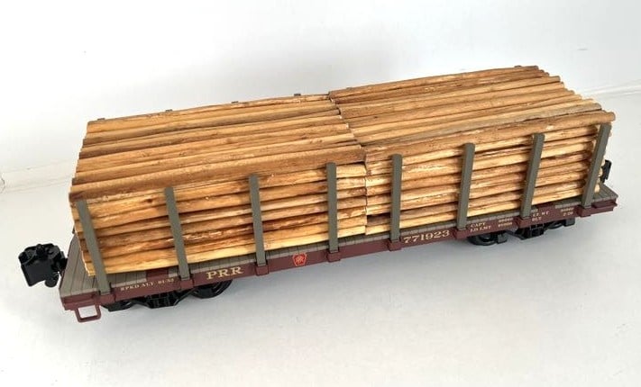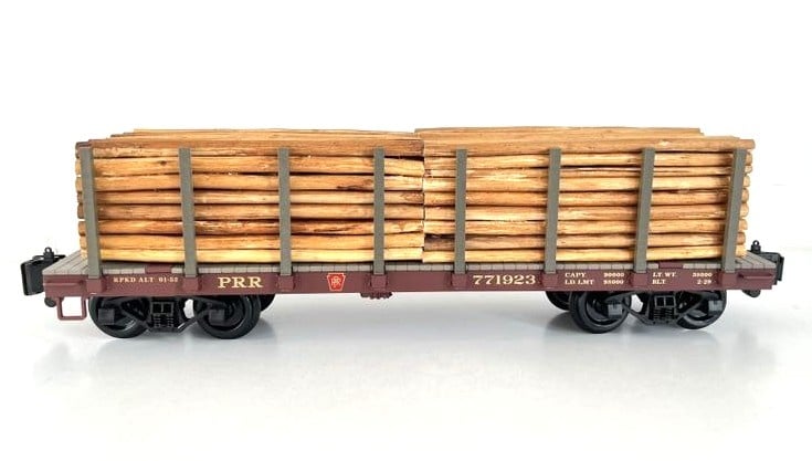 Pennsylvania Flatcar mit Echtholz-Ladung und Rungen (sehr guter Zustand)