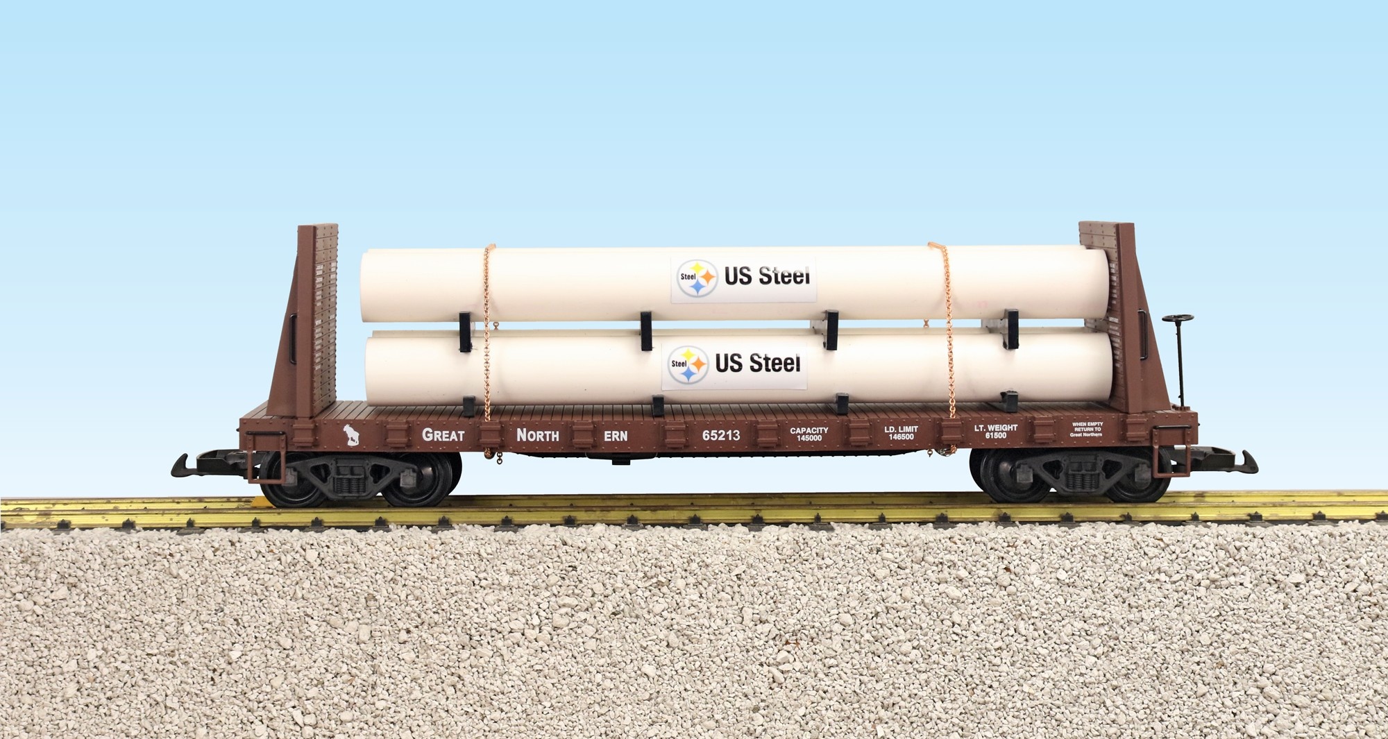 USA TRAINS Pipe Load Flat Car Great Northern #65213 beladen mit Rohren