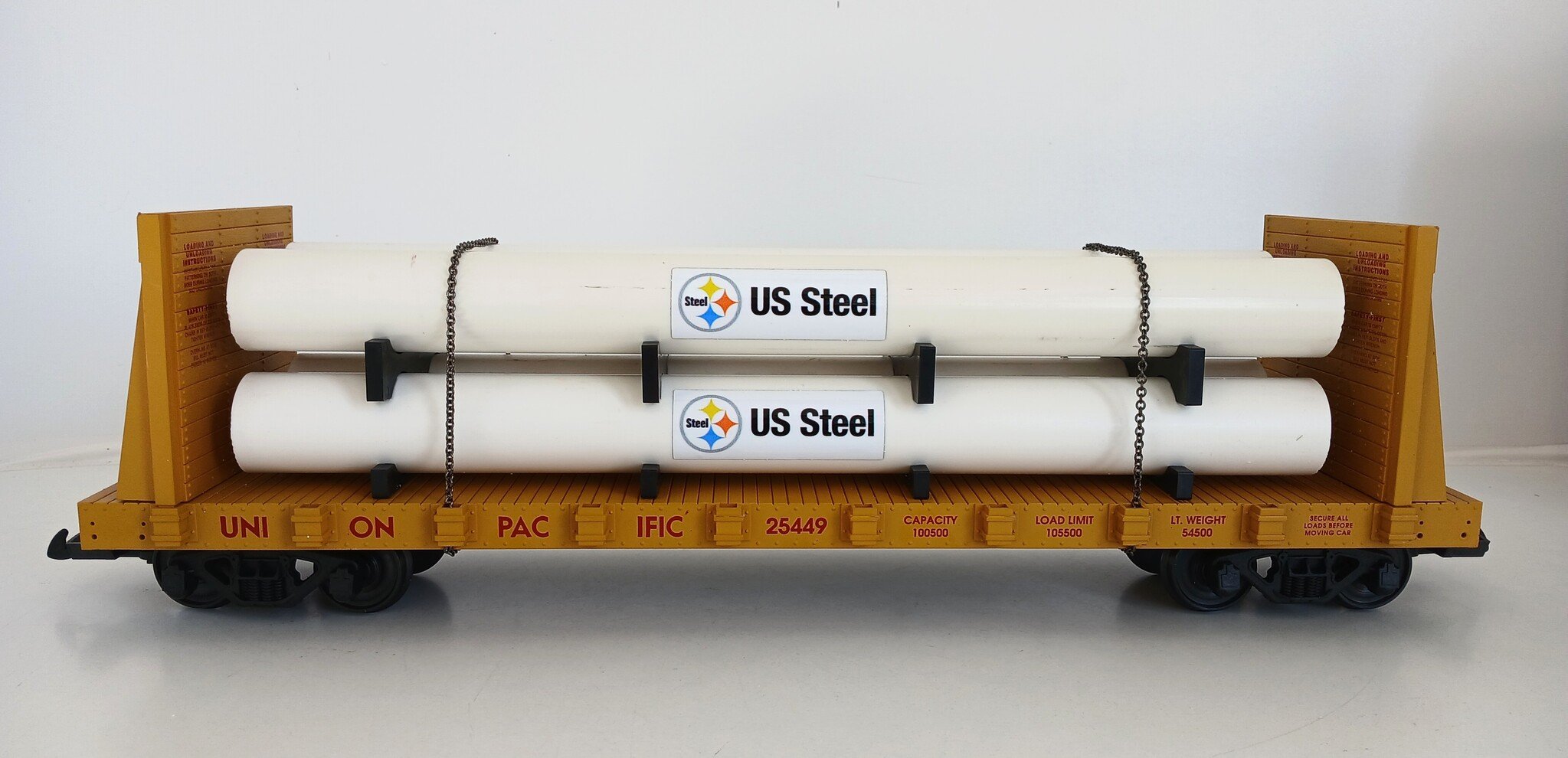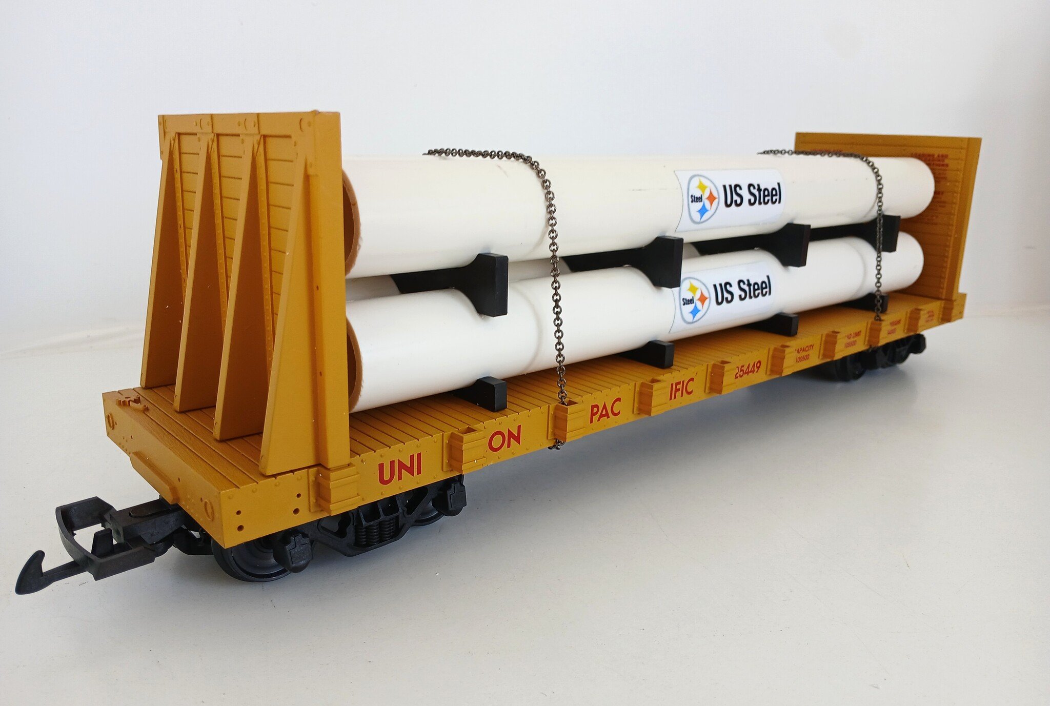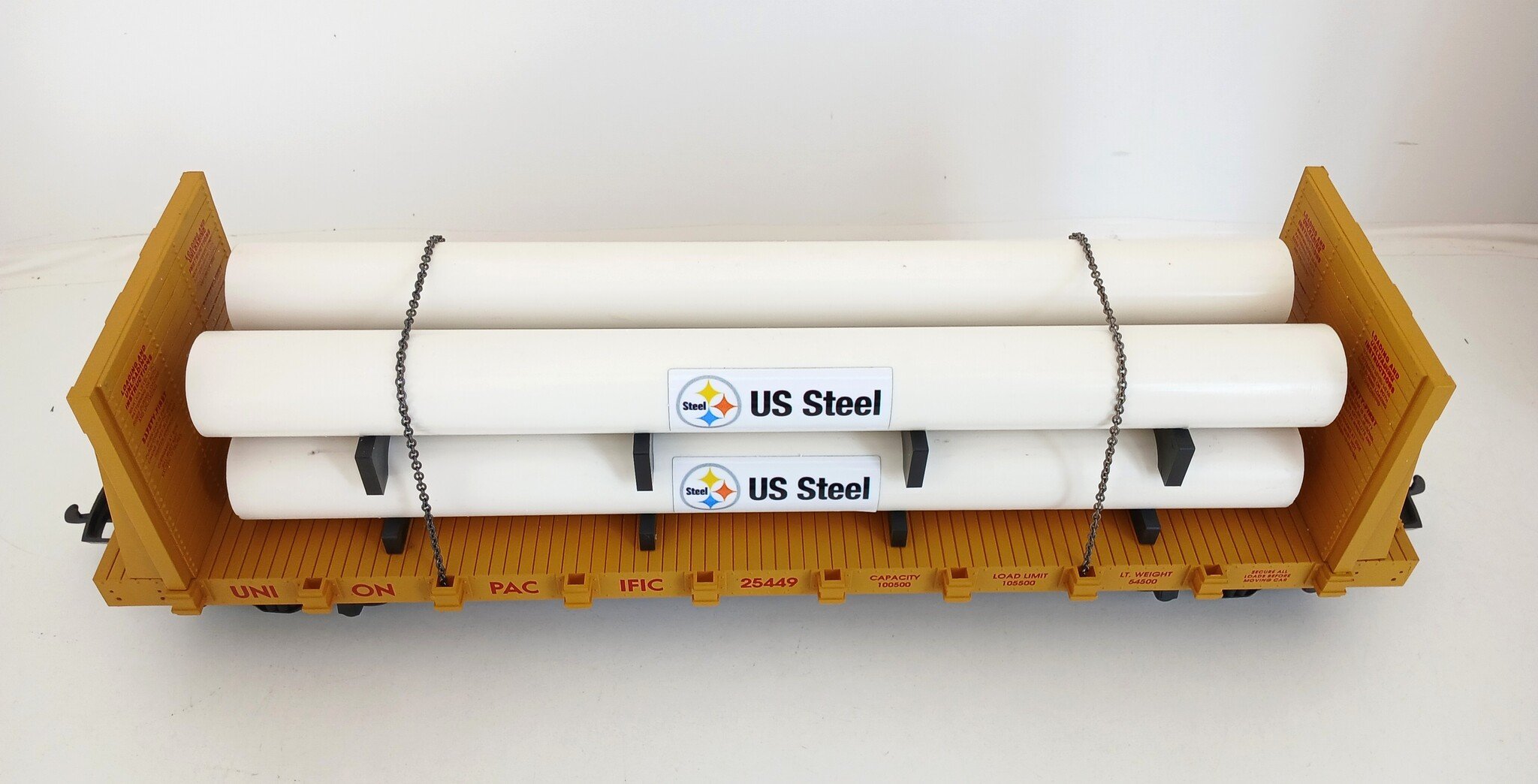 USA TRAINS Pipe Load Flat Car Union Pacific beladen mit Rohren (guter Zustand)