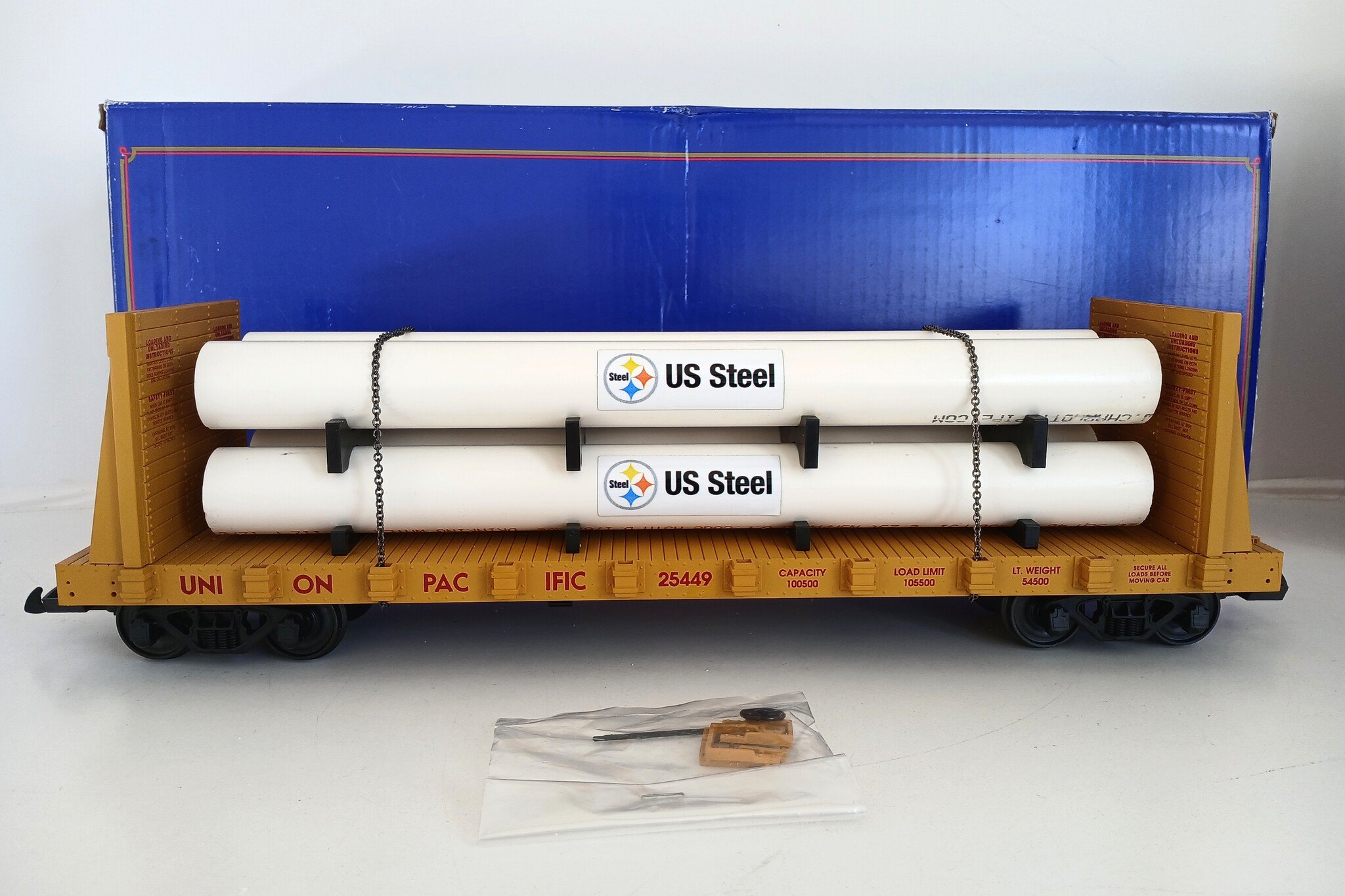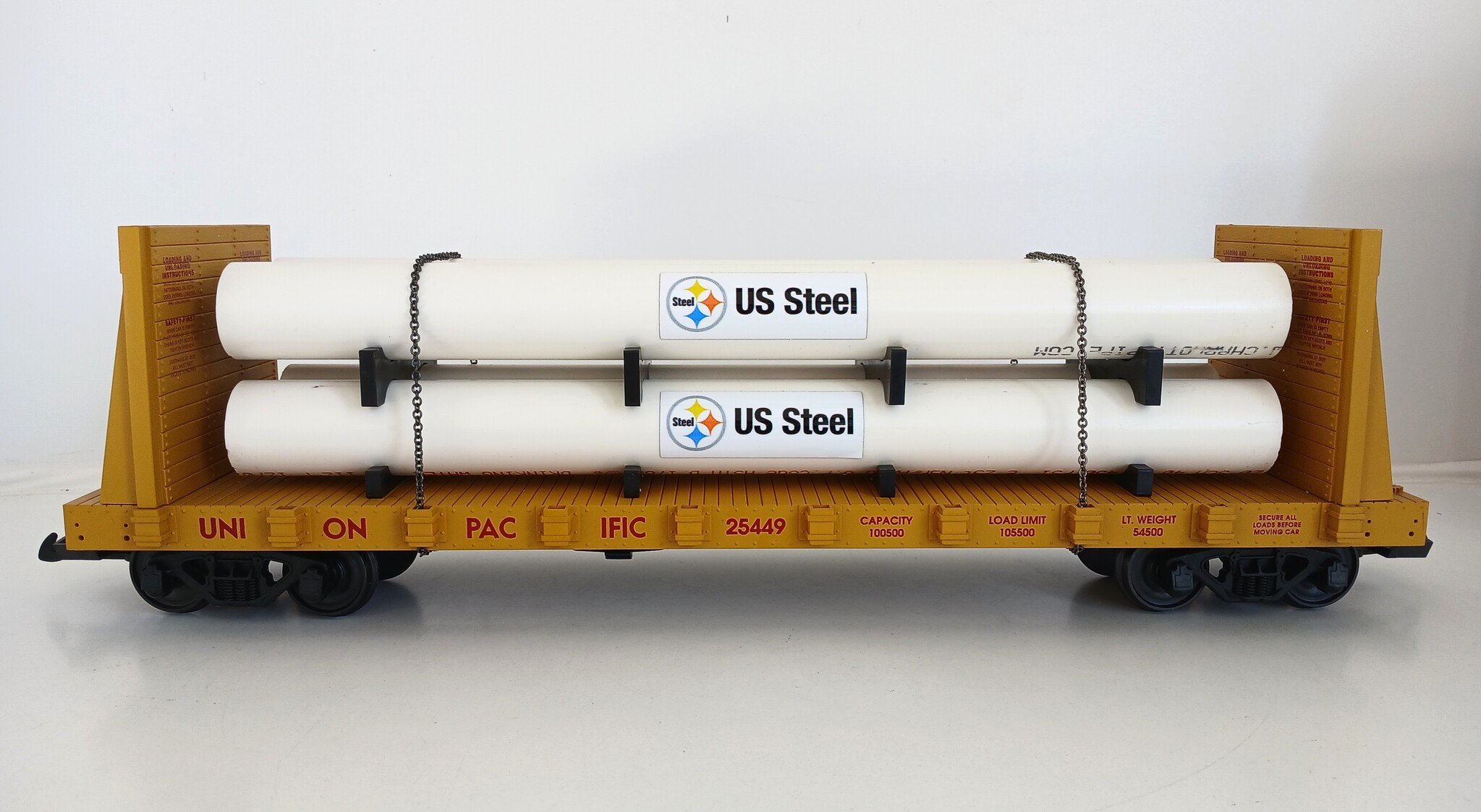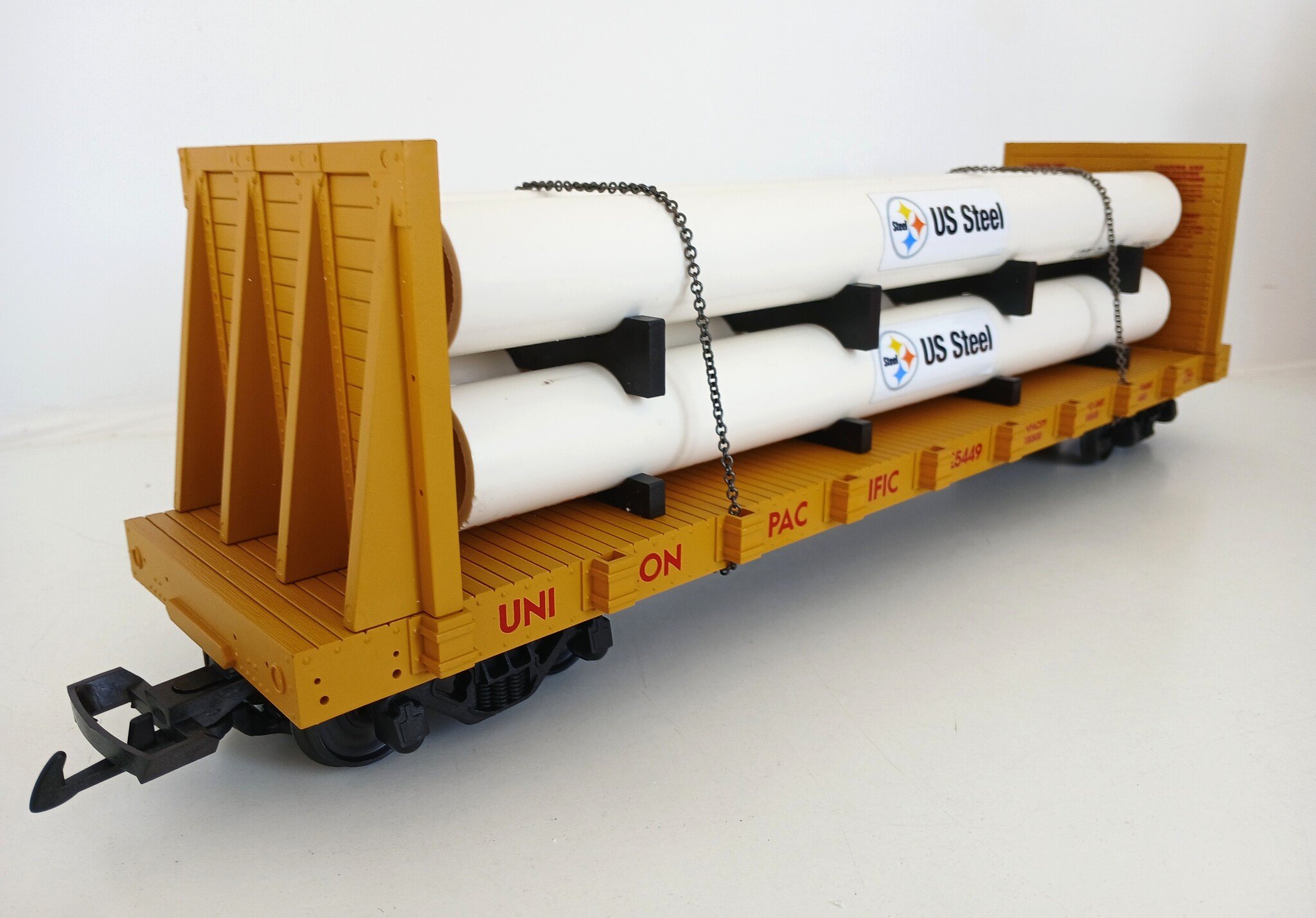 USA TRAINS Pipe Load Flat Car Union Pacific beladen mit Rohren (guter Zustand)